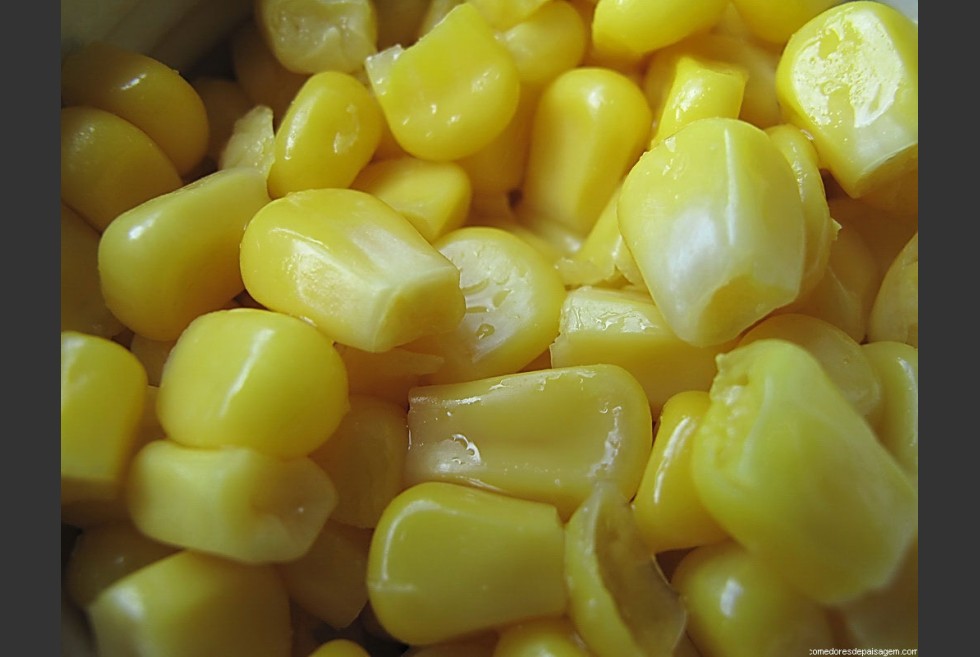 Um frasco/lata de milho, 1 cebola pequena picada, uma colher de sopa de margarina vegetal, uma colher de chá de pasta de pimento, 1 folha de louro, orégãos, piripiri, sal, pimenta e um pouco de leite (de soja, arroz ou aveia).