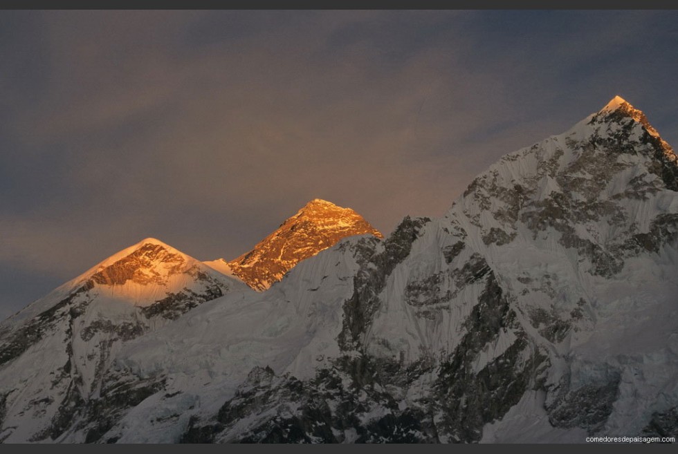 Apesar de estarmos cada vez mais alto, os olhos continuam a ser irremediavelmente atraídos para o céu. Um paraíso de montanhas agrestes e inóspitas, pintadas de branco, desenrola-se diante de nós. É inútil declinar nomes de lugares, aldeias, rios: a neve cobriu tudo com um manto branco homogéneo. Só os cumes sobressaem: as flautas de gelo do monte Lotse, a magnífica bossa do Ama Dablam, o longínquo Cho Oyu. Afinal, o Evereste só é a montanha mais alta do mundo por escassas dezenas ou centenas de metros – à nossa volta, quase todas ultrapassam os sete mil e quase todas são mais bonitas que aquela pirâmidezinha modesta, que só se avista acima dos cinco mil metros, do cimo do Kala Pattar ou do Gokyo Ri. Desses cumes, a visão é prodigiosa e abrange glaciares, lagos, vales escondidos por trás de montanhas e até algumas avalanches, que explodem em apoteose pela encosta abaixo, levantando nuvens de neve de um branco azulado. O dia começa com o sol a escorrer pelas vertentes, e termina com o acender de picos cor de fogo sobre um céu quase negro. O resto é caminho.