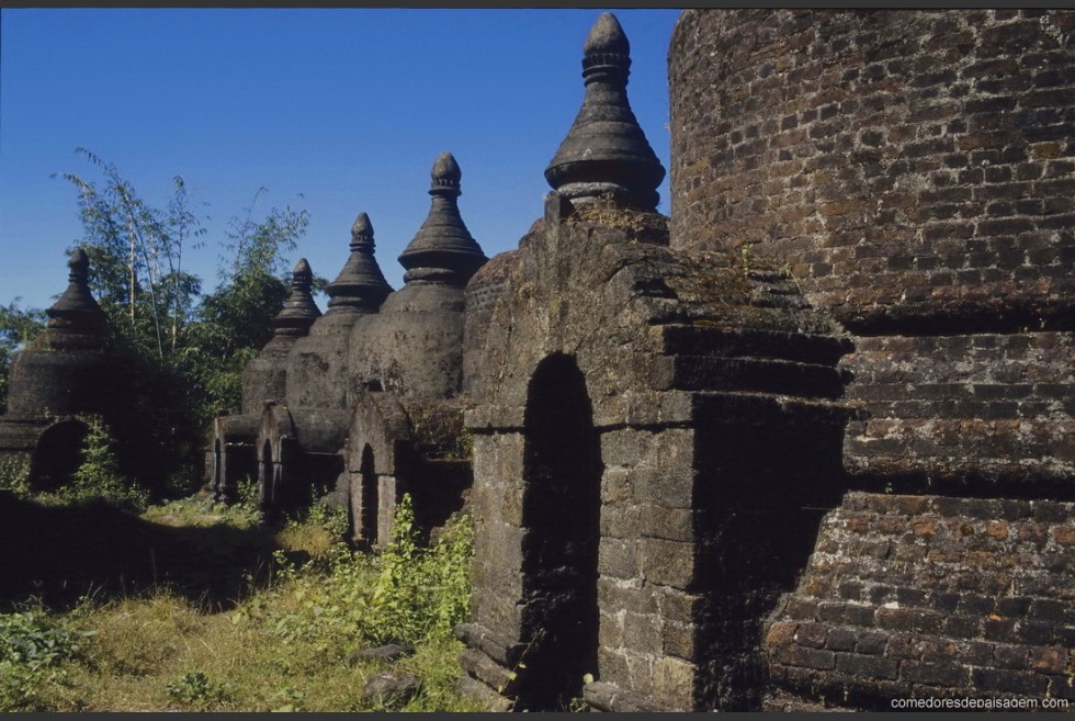 Dukkanthein, Andaw, Sakyamanaung, Yadanapon e o pequeno Pitaka Taik, são apenas algumas das mais impressionantes construções, pelo porte e pela delicadeza do detalhe. Em forma de sino, simbolizando os vários elementos que compõem a harmonia universal, desdobram-se em corredores circulares decorados por imagens de Buda, iluminadas por pequenas janelas estrategicamente rasgadas na pedra. As salas são silenciosas, íntimas e frescas, por contraste com o sol escaldante e a luminosidade do exterior. Todas as colinas têm a sua paya, com vistas fantásticas sobre o arvoredo cerrado e os rios que o entrecortam. A aldeia fumega lá no fundo, sem ignorar os seus templos. As pessoas visitam-nos, cavalos pastam em redor, a água é retirada dos seus poços, mulheres fumam charutos na sua sombra, enquanto dão de mamar aos filhos.