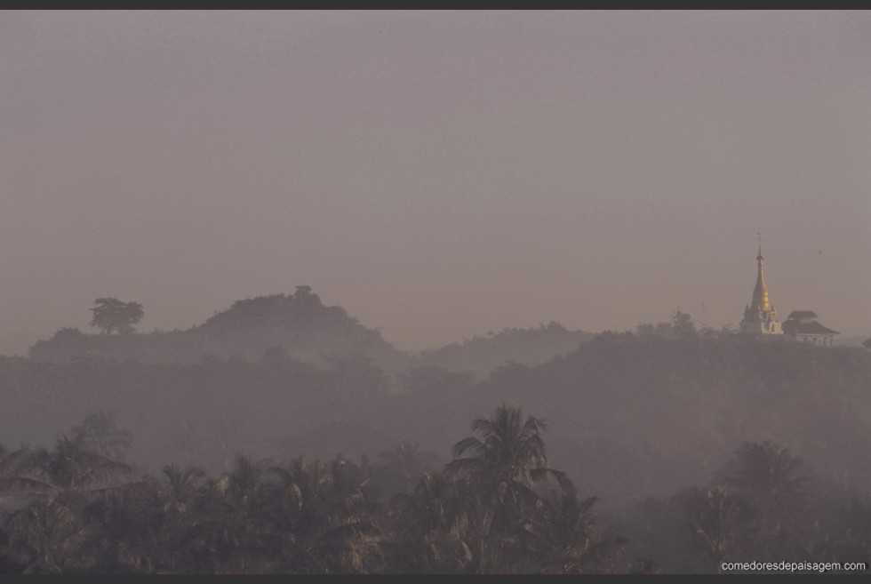 Uns minutos mais tarde, ainda por ali andávamos desorientados, quando alguém nos apontou uma barcaça sobrecarregada, dizendo as palavras mágicas: Mrauk U. Afinal havia outro transporte! Não havia, sequer, lugar para nos sentarmos, mas isso já não tinha importância nenhuma: podíamos seguir viagem e ainda por cima pagar em kyats, sem problemas com os trocos. Partimos para Mrauk U de pé, enganando o cansaço em conversas geográficas com o capitão, que debitava países e capitais, sabia dizer Lisboa e Vasco da Gama com uma pronúncia perfeita.