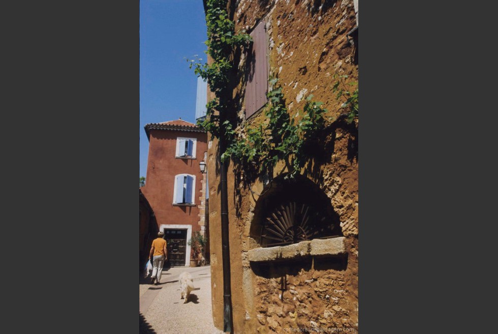 Ali próxima, a aldeia de Roussillon possui ainda uma área de exploração, com carreiros assinalados para as visitas turísticas, quilómetros de cores intensas e formas inesperadas. Colinas e falésias, pinhais de chão cor de fogo, o verde-escuro das árvores a recortar-se nos tons dourados da terra. A própria aldeia tomou a cor do ocre, com casas afogueadas por este pigmento natural, em tons que vão do castanho ao amarelo-torrado. Os artistas não deixaram de colaborar com este louvor a um material em desuso, e na pequena vila não faltam galerias de arte com exposições permanentes e coloridas, nomeadamente na área da pintura.